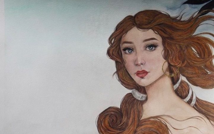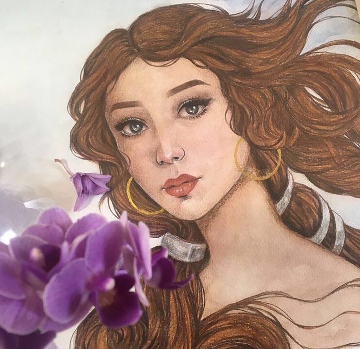 Our first graphics designer was Annabelle Liu (@annabelleliuart), with her enchanting watercolour painting of Venus, out of her half shell and up close and personal.