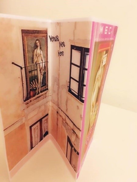 The process of both designing and editing a somewhat literary based ‘magazine’ with InDesign, Photoshop and Publisher required us to form a balance between the editorial aim of celebrating individuality and culture, through a lens of absolute inclusion, with the more artistic background of incorporating an already established, extremely feminine image as a motif. This balance was struck by combining relatively ‘serious’ topical articles with our current mascot: Venus (Aphrodite), goddess of love, beauty, pleasure and procreation. Although our ultimate aim is to produce all of our own images through graphic design, illustration and photography, I was originally inspired by contemporary graphic designer Ege Islekel who I discovered through art pages on Instagram. He subjects infamous figures to modern circumstances in a series of cleverly manipulated images. Venus is placed in different modern settings (running on a treadmill, wearing makeup and getting plastic surgery) which resonated with me due to the way in which contemporary standards of femininity are satirically exaggerated. I interpreted the illustration as a comment on the hollow superficiality of modern beauty standards. Even a symbol of purity, love and transcendence (a goddess) succumbs to the artificial criteria used to navigate today’s culture of social desirability. The juxtaposition of the classic icon with the modern canvas parallels the way in which we aim to tackle larger, sometimes philosophical, questions from a 21st century perspective. Due to the reader’s memory retention of afterimage, the individual illustrations on the previous page are therefore interlinked into those on the following pages, compounding time and memory (Smith 68) to help create a concept of heavenly, mythical and flourishing imagery throughout the zine. It can be viewed sequentially, the middle pages can be spread into a whole piece, or the back two pages and the cover can be viewed as a whole illustration. I originally wanted to place another image on page 6 next to Peter’s poem so that the back cover is also an image; however, there wouldn’t have been enough text (as there are already two other back covers) and the reader can now turn over the zine to immediately read about its aim.