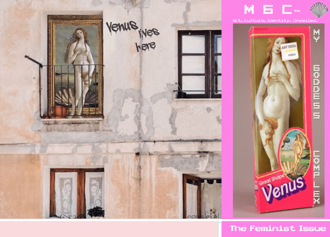 Although I’m keen to perhaps explore the mainstream A4 double page spread, I decided to shape the format it in a way allusive to a digital article layout (similar to that of a blog format). The full-size Venus on the cover metaphorically encapsulates the entire zine as a stereotypically gendered, feminine object- an ‘art doll’ box meant to confine a socially desirable replica of a woman into a plasticised prison for children to open, play with and continue to be influenced by. Not only is Venus’ body type, viewed as perfection centuries ago, a subversion of the Barbie Doll proportions which you expect to be placed in the box, but her stature is also less passive than other female bodies portrayed in art. For example, The Sleeping Ariadne helplessly lies on a chaise, lethargically exposing her body.