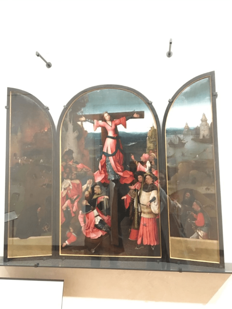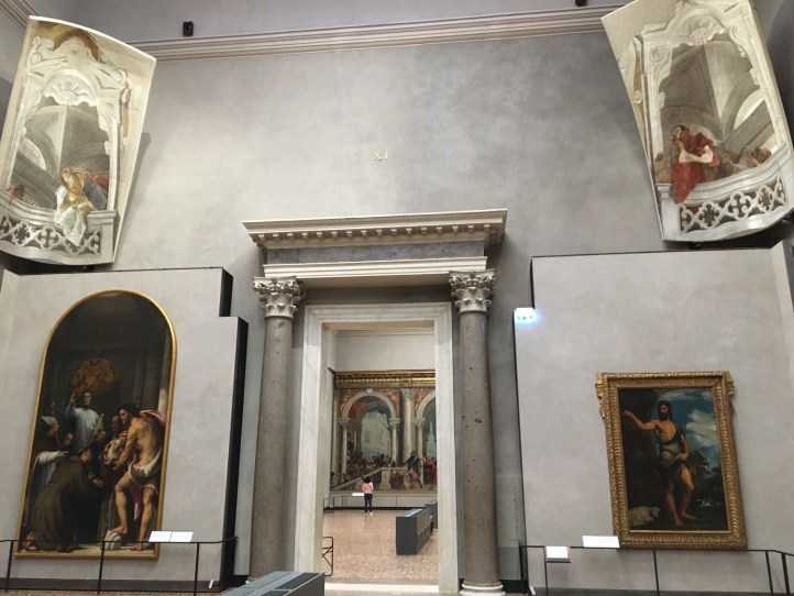 The Academia was originally founded in 1750, in what was once a 12th century monastery, thus the omnipresent Catholic themes, icons, Madonnas, and biblical imagery. The ornate ceiling can only be described as grandiose and, as you glide from room to room and gaze from wall-length depictions of The Resurrection to water-coloured dancing satyrs and nymphs, you completely forget to reach for your phone. Stark white marble statues with a porcelain touch stare blankly in various head-less or body-less forms. Names like Veronese, Canaletto, Tintoretto, Titian, and Bellini grace the placards placed beneath. One painting is an almost exact view of The Grand Canal, even today, with only one noticeable difference — the tide is about half as high as it is right now. If there was ever a testament to global warming…