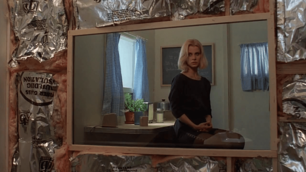 The real peak of the film is when Travis tracks down his son’s mother, Jane. When he finally confronts her at the seedy peep show club she works at, the one-way glass separating them shields his identity. It’s in this scene we find out all the missing links, finally providing context to the mystery hanging over every prior scene. He tells her a story about “these two people”, and what she assumes is a man releasing his life’s baggage, reveals to be her own life’s events. The one-way glass meant to shield her, ends up being a prison, forcing her to recall pain she had escaped. Throughout the film Travis’ perceived innocence and child like demeanor puts him in the position of victim, but in this scene we see the tables turn. The power of the one-way glass switches control, and we momentarily see a cruel, unkind man.