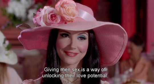 By repeating the patterns and schemes of Technicolour, cinematographer M. David Muller reinforces an abstract setting which seems familiar yet also has a mythical landscape, compelling us to actively search the screen for aesthetic features like props which all reinforce the female gaze and provoke emotions of shock, amusement, laughter and even anger.