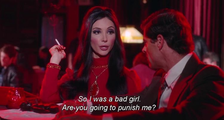 This idea is reiterated by the overwhelming colour scheme.The cinematography creates an ode to sixties and seventies Technicolor thrillers and uses older Hollywood colour grading, editing, lighting, acting and speaking (as well as references to older tropes like Hitchcock) to place the film within an older setting. From the aesthetics alone, viewers would immediately expect this sort of film to be dominated by the male gaze.