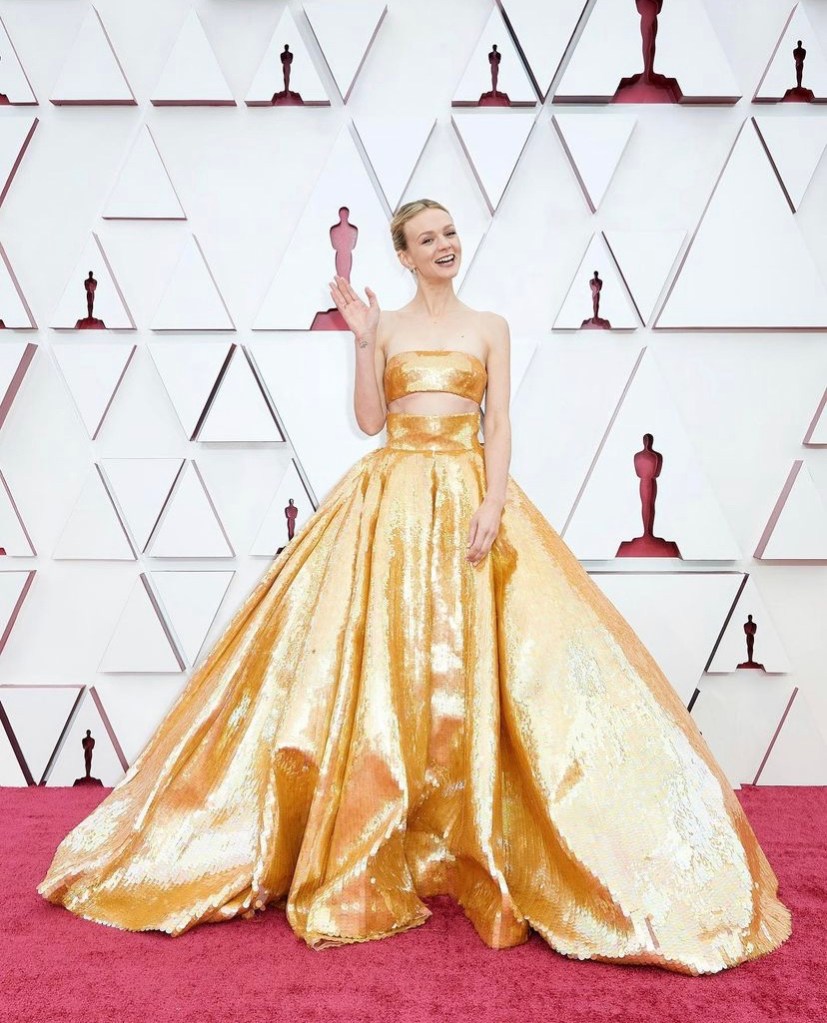 Carey Mulligan met Oscar attire expectations in this decadent, double-take-worthy Valentino gown. I’ll never get tired of seeing the Hollywood extravaganza we’re all so fond of deep down. Sequins and all.