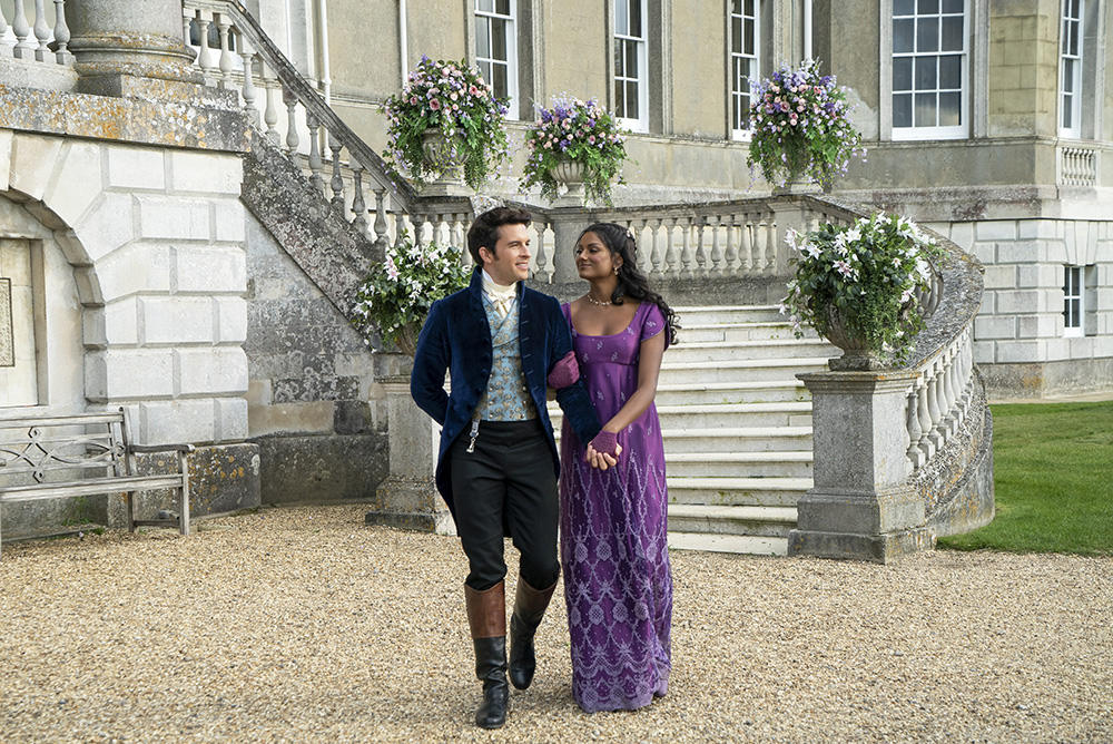 Shonda Rhimes is known for her diverse casting that is more subtle rather than forced. With the Duke played by Rege-Jean Page in season one, a black man was able to be the lead that everyone coveted in a period and regency environment mimicking the nineteenth century. Rhimes continued her representation of interracial relationships into season two with Simone Ashley playing the lead love interest, Kate Sharma. Kate arrives with her younger half sister, Edwina, who is cast as the diamond of the season. This shows how both Daphne, who is a glorified Western notion of beauty, and Edwina, who represents dark-skin Tamil women can all be diamonds in an English regency setting in the show. Moreover, the Queen is cast as the magnificent Golda Rosheuvel, another person of colour, encouraging the tipping of the scale for what is to be expected from a historical period piece.
