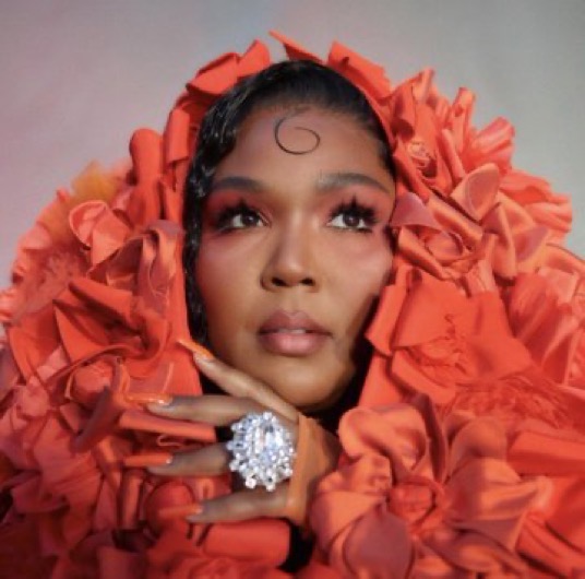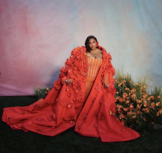 Lizzo’s red carpet ‘fit and first look of the night raised the bar. The orange overcoat trailing with flowers, surrounding the signer’s head like a cherub, whilst adorning two major rocks on each hand. Lizzo matched her nails and makeup to the look, giving Mother Nature at the Grammy’s, with a beaded corset for accentuation, of course.