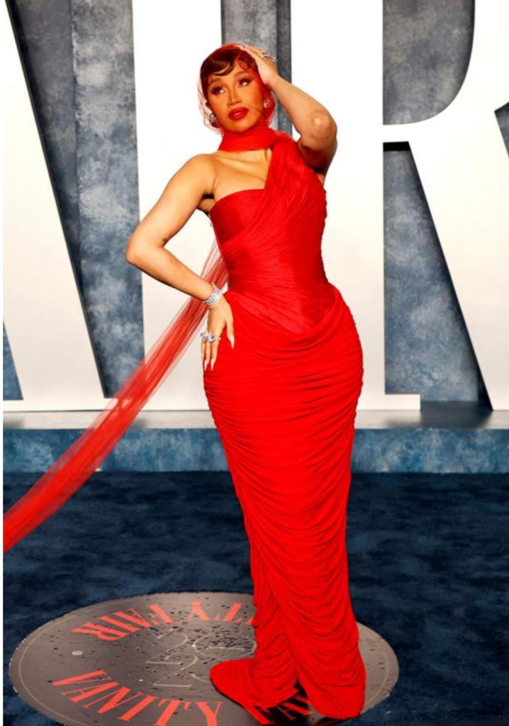 Cardi B delivered once again (following her deep blue Grammy number), wearing a red, ruched Robert Won number with a veil to match. There was a subtle party in the back with a corset fit to give sex appeal, whilst the business in the front gave chic and sophisticated with the scarf flowing behind the rapper and a trail following behind her.