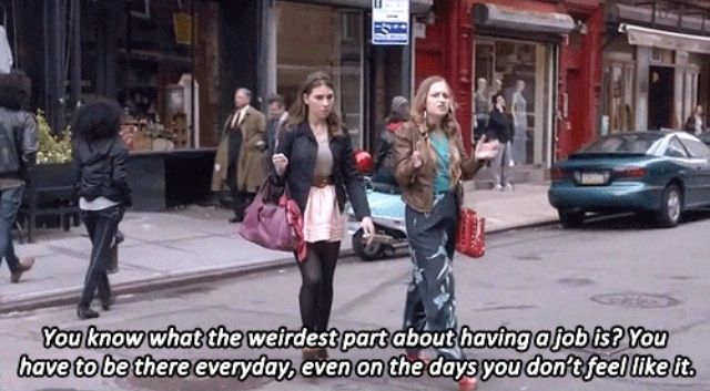 Flatshares. Living in a big city for the first time. Working and quitting unpaid or lowly paid internships and first time office jobs. Freelancing for creative jobs. The countless job interviews and applications. The show depicts living and growing up in your 20’s, along with girlhood, so well. Finding the right career and landing a full-time role as Shoshana later discovers post-graduation, is a long and non-linear road, even with a degree or two to hand. Just as Hannah did in the beginning, whom Shosh (along with viewers) judged for her naivety and handling of this, when her parents had to cut her off financially in the show’s pilot.