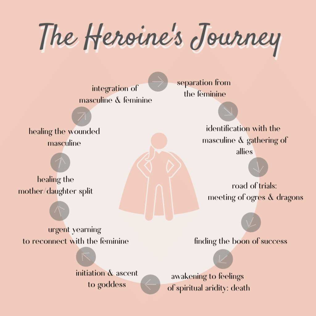 Although this journey seems to be universal for heroes, Murdock outlines its absence of heroines[25]. Unsatisfied with Campbell’s response to the absence of women in his model (“Women don’t need to make the journey… she’s the place”[26]), Murdock created ‘The Heroine’s Journey’[27].