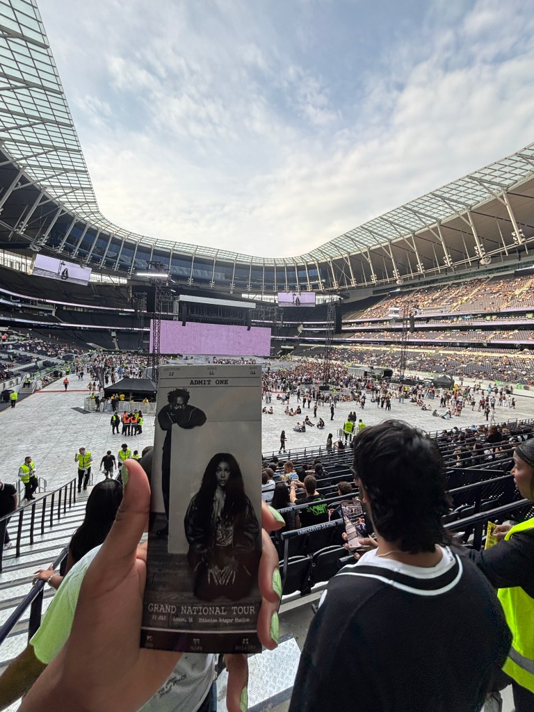 Arriving early to the stadium, due to standing tickets this time, meant that we could enter the official merchandise store for the Hotspurs – which is turned into the musical act’s – by 5.30pm rather than at the end of the concert right before it shuts and has amassed an even longer queue.