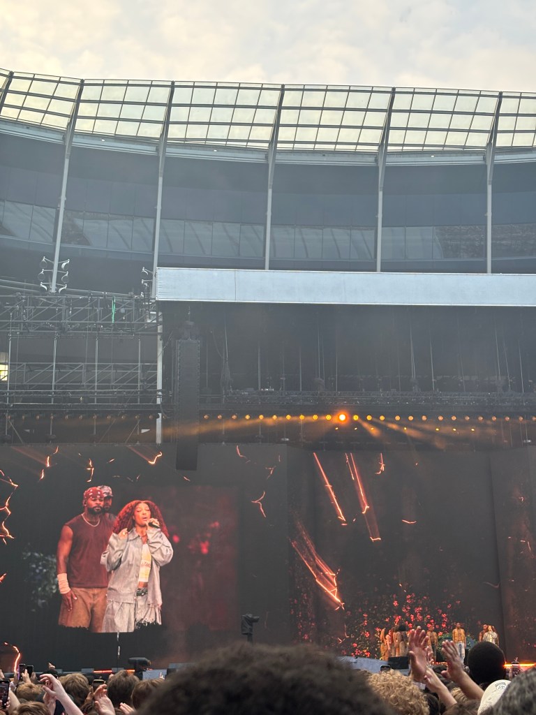 The main takeaways was the contrast in the crowd. The usual suspects of tall English lads were up front, ready to make a mosh pit to Kendrick’s anthems, then there were groups of shorter teen girls waiting for SZA and craning our necks to see. In the midst of this, were heterosexual couples where the guy might be there for Kendrick and the girl for SZA, sending the men mute when she came out, with some of the lads in front of us saying that they “didn’t know the words to this one” when I was trying to not break out of my trance listening to her rendition of ‘Blind’ from SOS. A lot of the times I found myself one of the few people in the rear standing pitch section screaming out to SZA’s ballads and Ctrl hits (I thought that was a widely acclaimed debut?) – definitely ones for me, myself, and I time as opposed to a stratospheric stage. The vast majority were waiting to get hyped up again to Mr Lamar. Outside of these groups were fans who were there for both artists. None of the reviews I’ve seen so far have noted this, but I know that this group existed because I was one of them – and a few mutuals on my Instagram that went for both.