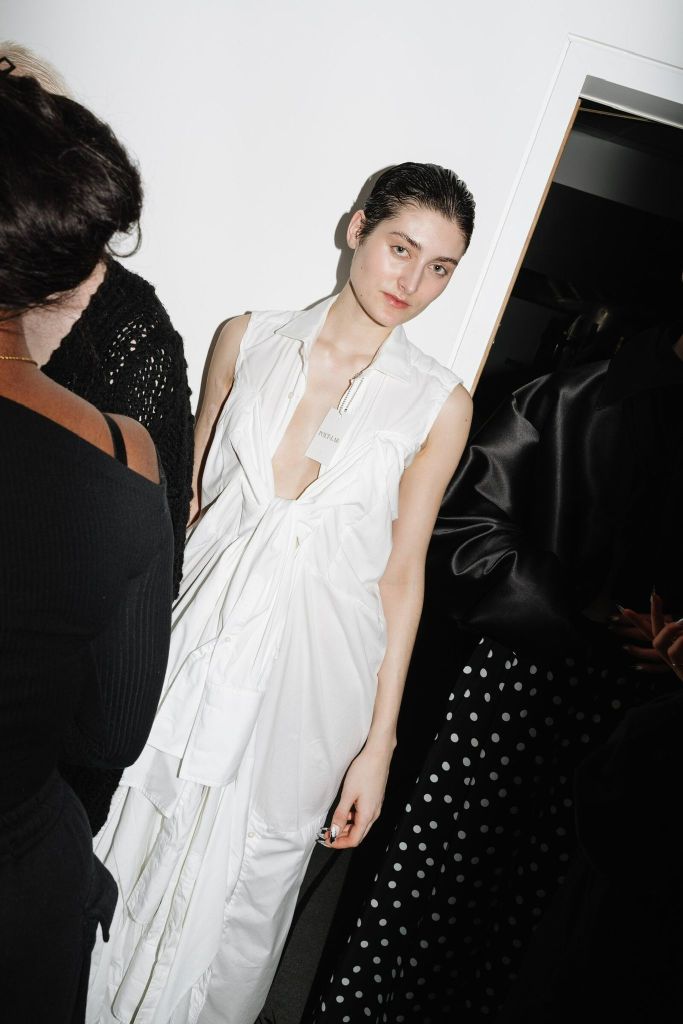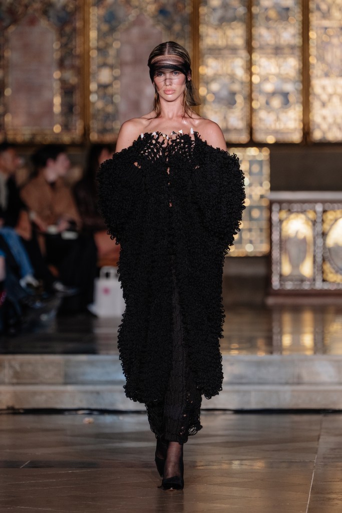 The silhouettes in this collection seem to evolve mid-movement from tailoring to drape, rigidity to transparency. How did you technically achieve that fluid transformation in form?