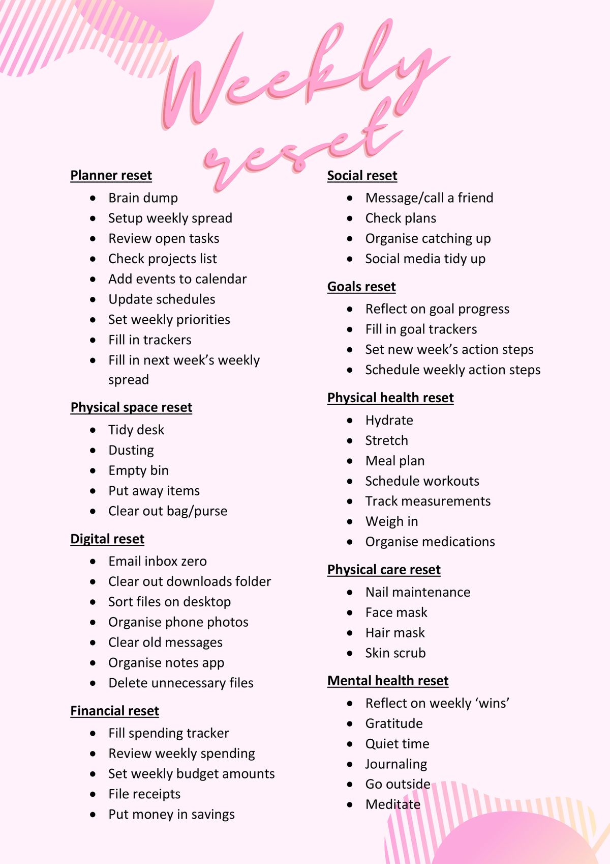 By splitting your planner in sections you won’t feel as overwhelmed by your goals and you can concisely prioritise what is most important to you in the coming months. Maybe in March your priority is getting ready for a half marathon and in September your priority is simply getting a tan on the beach.