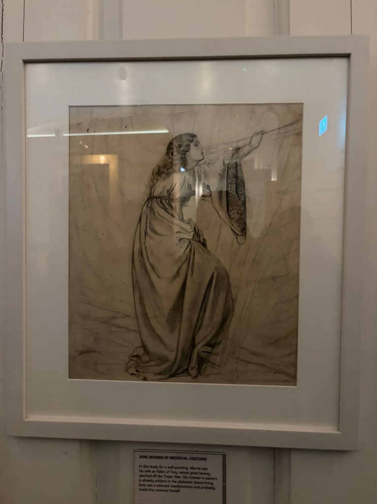 You might have also heard of William Morris from the Victoria & Albert Museum – which is one of, if not my favourite, art gallery and museum in London. The gallery shop for the V&A holds textiles and designs on products that are created by Morris, in this floral patterned note that is easily recognisable. I’ve also been gifted a cushion pillow case from the V&A with a Morris design that’s vibrant yellow with leafy and flower designs on top. When you walk into the Morris gallery and house you’re presented by the gift shop that’s reminiscent of the V&A shop in South Kensington – then the exhibition starts to the right.